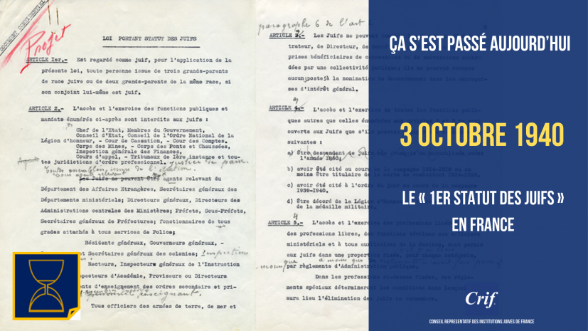 Il y a 81 ans, l'instigation des lois antisémites d'octobre 1940 et notamment du "statut des juifs".