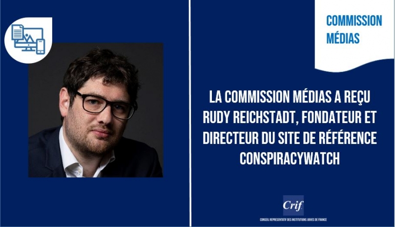 La semaine dernière, la commission médias du Crif, présidée par Gérard Unger, a reçu Rudy Reichstadt, à l’occasion de la parution de son livre « L’Opium des imbéciles », aux éditions Grasset. Rudy Reichstadt est le fondateur et directeur du site de référence ConspiracyWatch.info, consacré à l’analyse critique du conspirationnisme et des théories du complot.