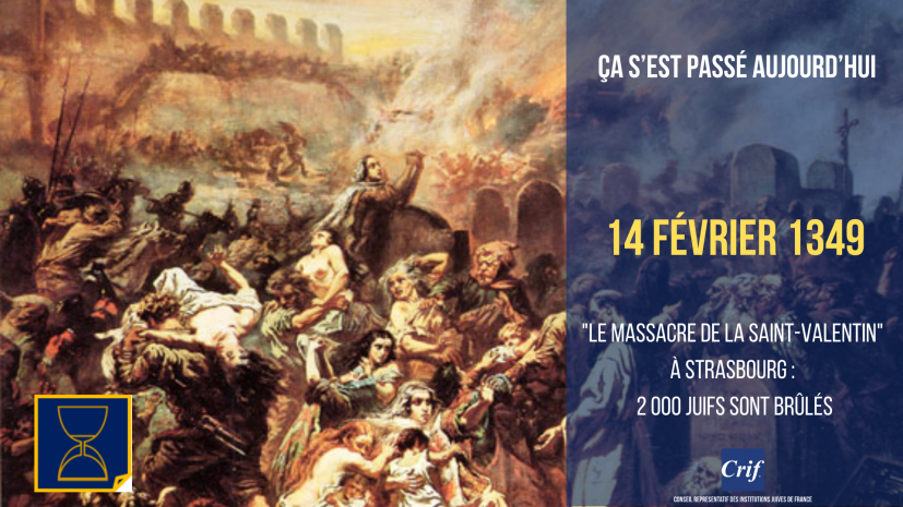 Le massacre des juifs de Strasbourg, connu sous le nom de "massacre de la Saint-Valentin", témoigne d’une flambée de haine à l’encontre des juifs, soupçonnés d'avoir empoisonné les puits et propagé l'épidémie de la peste.
