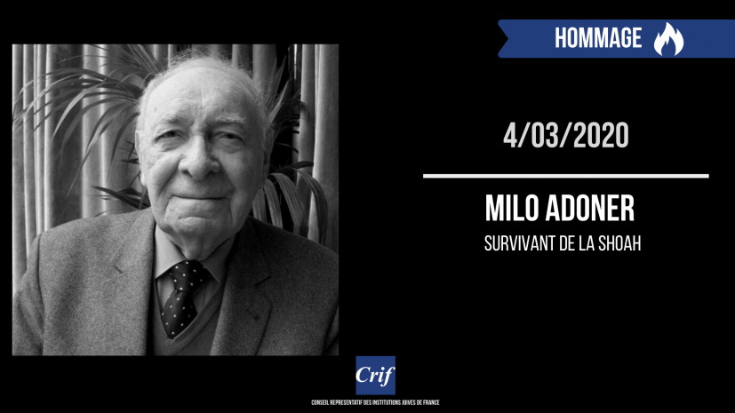 Rescapé de la Shoah, Milo Adoner est décédé ce matin. Il avait 95 ans. Nous adressons à sa femme Suzy et à leurs enfants nos condoléances les plus attristées