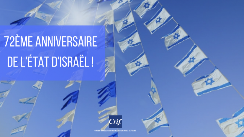 En l’honneur du 72ème anniversaire de l’État d’Israël, le Crif adresse ses meilleurs vœux de paix et de prospérité à l’État et au peuple d’Israël.