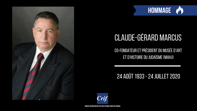 C’est avec une profonde tristesse que nous avons appris le décès de Claude-Gérard Marcus, à l’âge de 86 ans, le vendredi 24 juillet 2020. Il a été le co-fondateur et président du Musée d’Art et d’Histoire du Judaïsme jusqu’en 2001. Il était également membre du Comité directeur du Crif. Le Crif adresse ses sincères condoléances à sa famille ainsi qu’à ses proches.