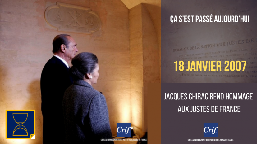 Comme le lui a proposé un an plus tôt Simone Veil, présidente de la Fondation pour la Mémoire de la Shoah, le président Jacques Chirac a fait entrer au Panthéon ces femmes et ces hommes “nommés "Justes parmi les Nations” ou restés anonymes“ à qui les Juifs doivent la vie, au nom de la France, avec respect.