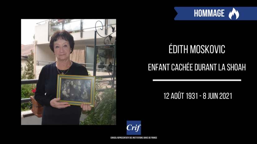 C’est avec une grande tristesse que nous apprenons le décès d’Édith Moskovic, enfant juive cachée durant la Shoah, mardi 8 juin 2021, à l’âge de 90 ans. Nous adressons nos plus sincères condoléances à sa famille et ses proches.