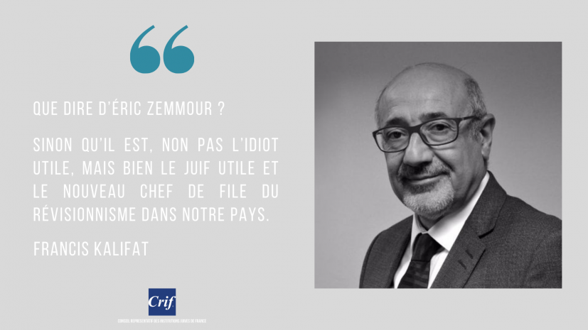 Lundi, l’essayiste Eric Zemmour a tenu des propos diffamatoires et insultants à l’encontre du Président du Crif, Francis Kalifat. Il réagit.