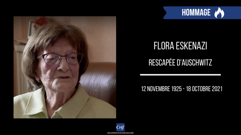 C’est avec tristesse que nous avons appris le décès de Flora Eskenazi, rescapée d’Auschwitz-Birkenau, lundi 18 octobre, à l’âge de 95 ans. Nous adressons nos sincères condoléances à sa famille et à ses proches.