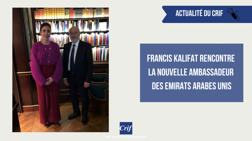 S.E. Madame Hend Al Otaiba, la nouvelle Ambassadeur des Emirats Arabes Unis en France a reçu Francis Kalifat, le Président du Crif, pour une première rencontre.
