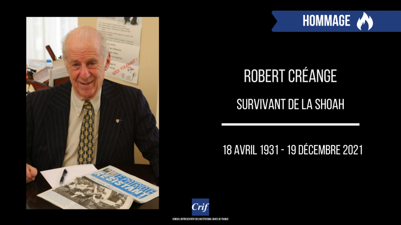 Défenseur inlassable de la mémoire de la Shoah, Robert Créange est décédé dimanche 19 décembre 2021 à l’âge de 90 ans. À 11 ans, en juillet 1942, il assiste à l’arrestation de ses parents qui seront assassinés à Auschwitz. Nous adressons nos sincères condoléances à sa famille et à ses proches.