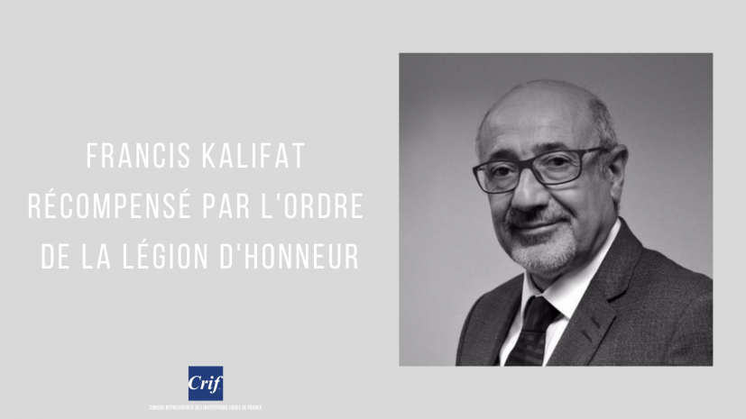 Cette année, le Président du Crif Francis Kalifat a été récompensé par l'ordre de la Légion d'Honneur. Il a été nommé au titre de Chevalier de la Légion d’Honneur.