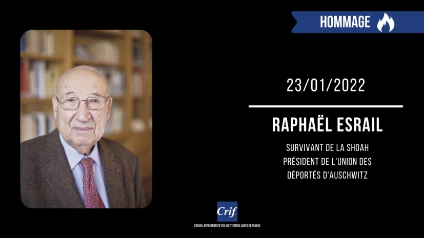 C’est avec une grande tristesse que nous avons appris le décès de Raphaël Esrail, Résistant juif, rescapé d’Auschwitz-Birkenau, Président de l’Union des déportés d’Auschwitz et militant de la mémoire, à l’âge de 96 ans. Nous lui devons beaucoup. Nous adressons nos plus sincères condoléances à sa famille et à ses proches.