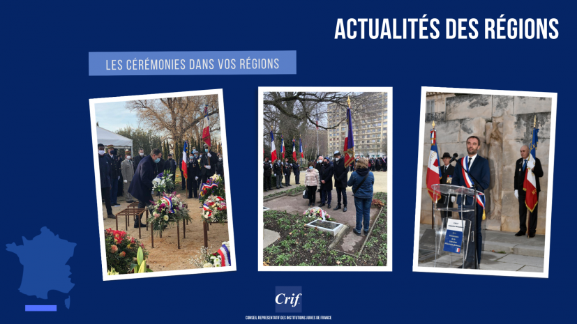 Le 27 janvier 2022, à l’occasion du 77ème anniversaire de la libération du camp d’Auschwitz-Birkenau, partout en France, ont eu lieu les cérémonies organisées par les Crif régionaux en mémoire de toutes les victimes de la Shoah. Pour en savoir plus sur la cérémonie organisée dans votre région, c’est par ici.