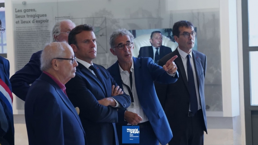 À l’occasion de la commémoration des 80 ans de la rafle du Vel d’Hiv, le Président de la République Emmanuel Macron a inauguré un nouveau lieu de mémoire de la Shoah dans l’ancienne gare de Pithiviers. Francis Kalifat, Président du Crif et Yonathan Arfi, Président nouvellement élu du Crif étaient présents.