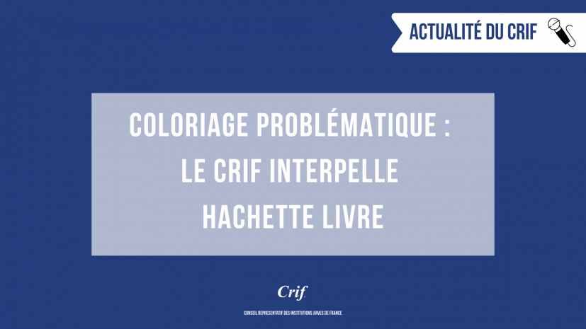 Le Crif salue la réponse et la décision d'Hachette d'arrêter la commercialisation de ce livre de coloriage.