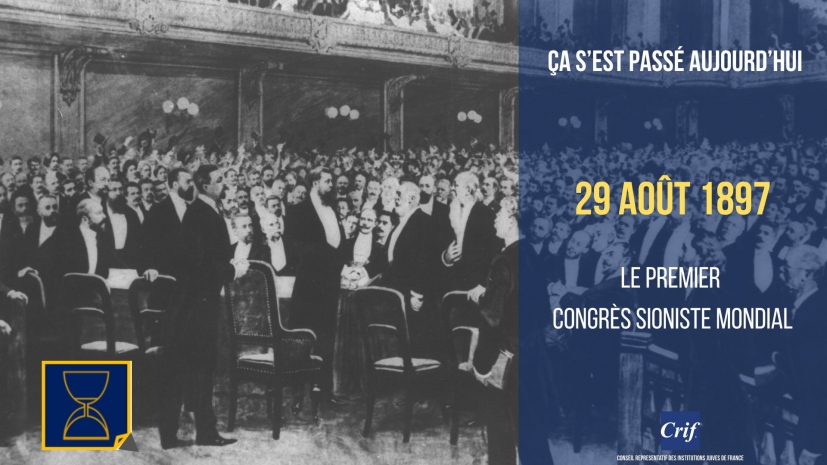 Theodor Herzl organise le Premier congrès sioniste à Bâle en Suisse, du 29 au 31 août 1897. Ce rassemblement marque un tournant décisif dans l'histoire du mouvement qui devient officiellement mouvement « sioniste-politique ». Herzl y propose son programme, qu'il qualifie de « plan de réunification nationale juive ».