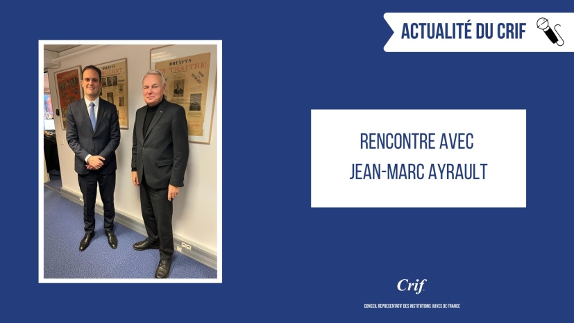 Jeudi 12 janvier 2023, le Président du Crif, Yonathan Arfi a rencontré Jean-Marc Ayrault, ancien Premier ministre et Président de la Fondation pour la Memoire de l’esclavage.