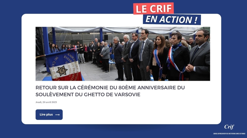 - Discours de Yonathan Arfi à la cérémonie du 80ème anniversaire du soulèvement du Ghetto de Varsovie