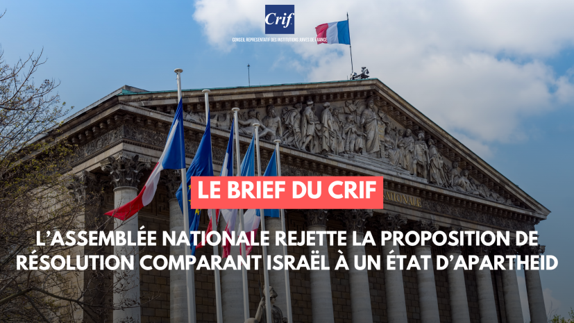 - Communiqué du Crif – Le Crif appelle au rejet de la proposition de résolution comparant Israël à un État d'apartheid