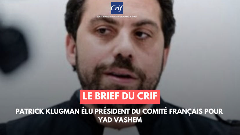 Le Conseil représentatif des institutions juives de France (Crif) exprime ses félicitations à Patrick Klugman qui a été élu ce lundi Président du Comité français pour Yad Vashem, et qui succède à Pierre-François Veil, Président depuis neuf ans.