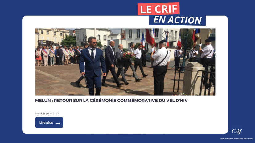 Dimanche 16 juillet 2023, à Melun, s'est tenue une cérémonie départementale en présence du Préfet, de parlementaires, des autorités civiles et militaires et des représentants de toutes les communautés juives du département de la Seine-et-Marne.