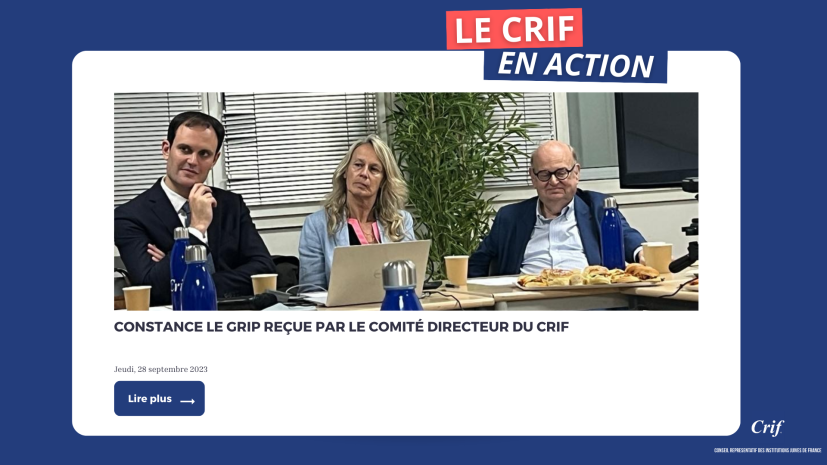 À la suite de cette nomination, le Président du Crif Yonathan Arfi a tenu à inviter Constance Le Grip à s’exprimer dans le cadre du Comité directeur du Crif.