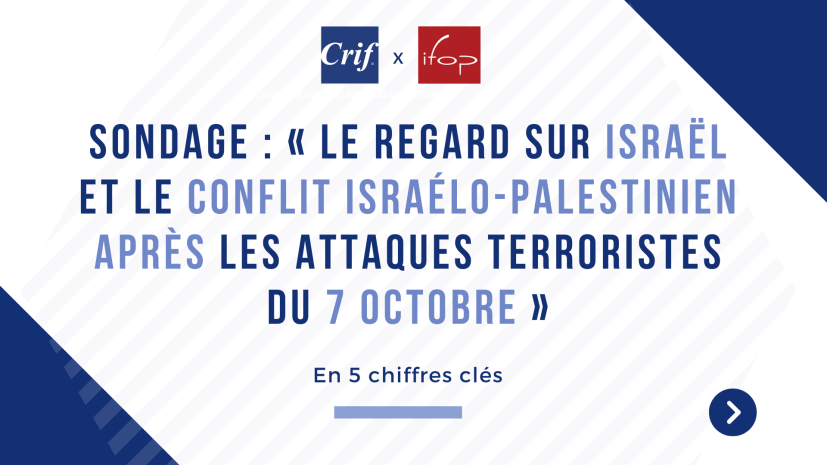 Le Crif présente les résultats d’une enquête réalisée par l’Ifop sur « le regard sur Israël et le conflit israélo-palestinien après les attaques terroristes du 7 octobre ». De cette enquête, – riche en enseignements, se dégagent des axes essentiels., notamment le soutien d’une majorité de Français à la volonté d’Israël d’éliminer le Hamas. Ce sondage montre également une crainte des Français de l’importation de ce conflit sur le territoire national.