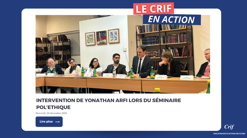 Mardi 19 décembre, Yonathan Arfi était invité à s’exprimer devant les participants du séminaire Pol’Ethique, pour une conférence intitulée : « Le Président du Crif, entre communauté juive, communauté nationale, et Israël : son rôle et son influence ».