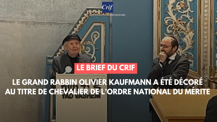 Le Crif adresse ses sincères félicitations au Grand Rabbin Olivier Kaufmann qui a été décoré au titre de chevalier de l'ordre national du mérite.