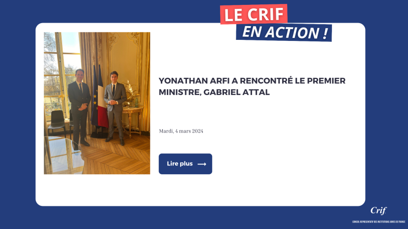 En début de semaine, le Président du Crif, Yonathan Arfi, s'est entretenu avec le Premier ministre Gabriel Attal.