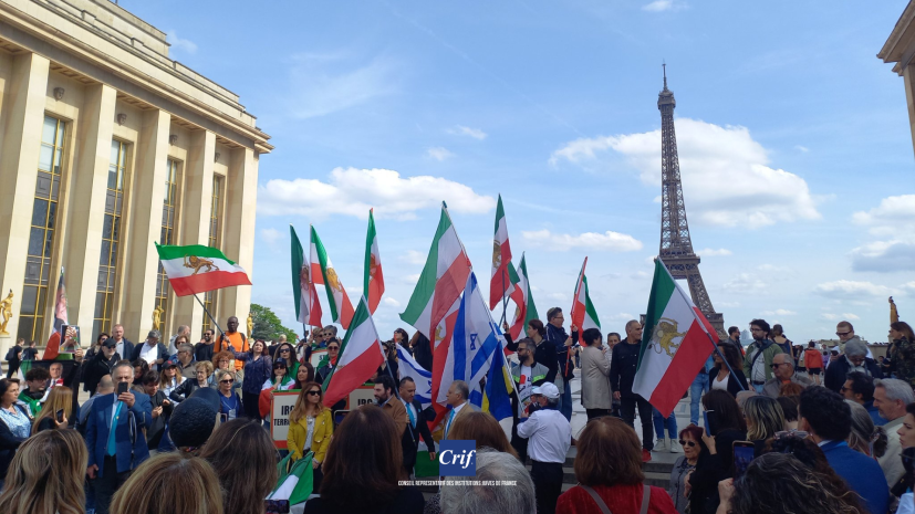 Au lendemain des attaques de la République islamique d'Iran contre l'Etat d'Israël, le Crif était présent au rassemblement organisé par des mouvements iraniens en France @femmeazadi @AssoHoma.
