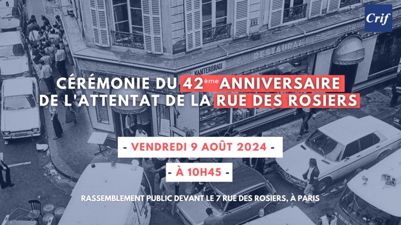 Le 9 août, nous commémorerons le triste anniversaire de l’attentat de la rue des Rosiers. Il y a 42 ans, le lundi 9 août 1982, vers 13h15, plusieurs hommes pénètrent dans le restaurant Jo Goldenberg, situé au 7, rue des Rosiers, dans le quartier du Marais, à Paris. Soudainement, c’est le chaos.