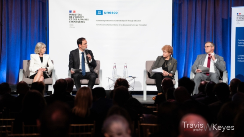 L’événement s’est ouvert par les allocutions du ministre des Affaires étrangères Jean-Noël Barrot, arrivé à New York quelques heures après sa prise de fonction, puis de la directrice générale de l’UNESCO Audrey Azoulay.