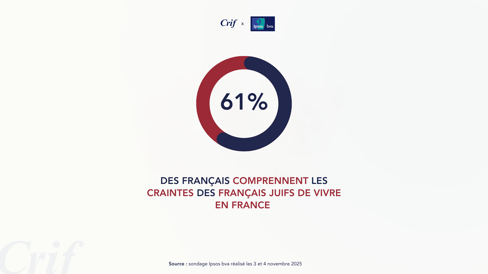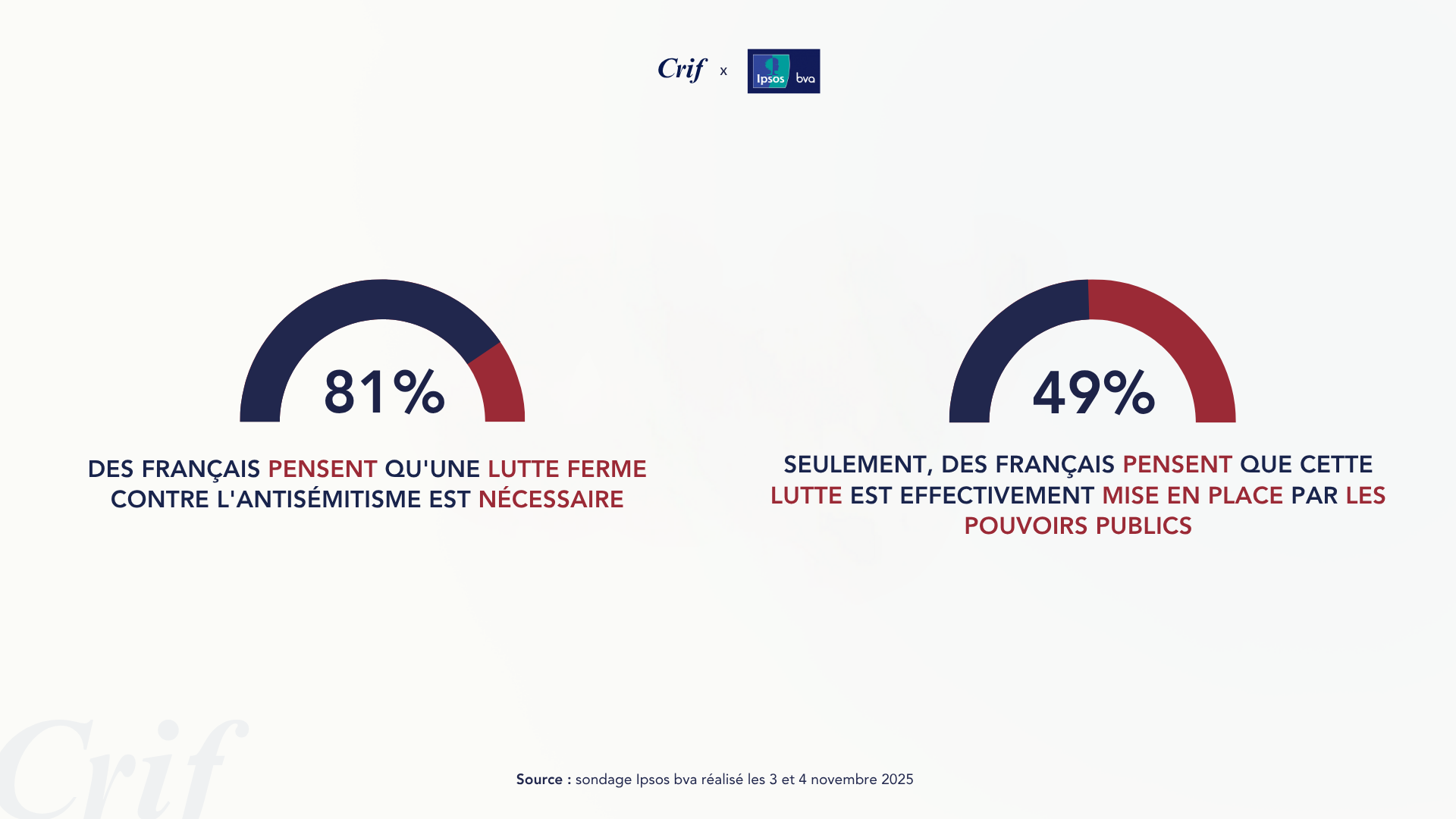Le Crif a récemment commandé une étude auprès de l’institut Ipsos Bva sur « Le regard des français sur l’antisémitisme ». L’enquête a été menée auprès d‘un échantillon de 1 000 personnes, représentatif de la population française âgée de 18 ans et plus entre le 3 et 4 novembre 2025.