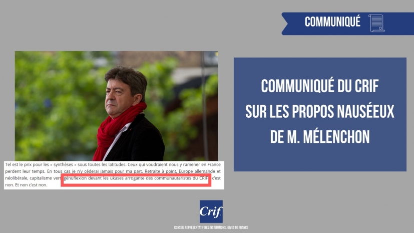 Communiqué du Crif sur les propos nauséeux de M. Mélenchon