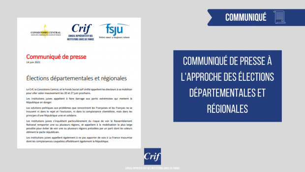Communiqué du Crif – le 14 juin 2021, à Paris
