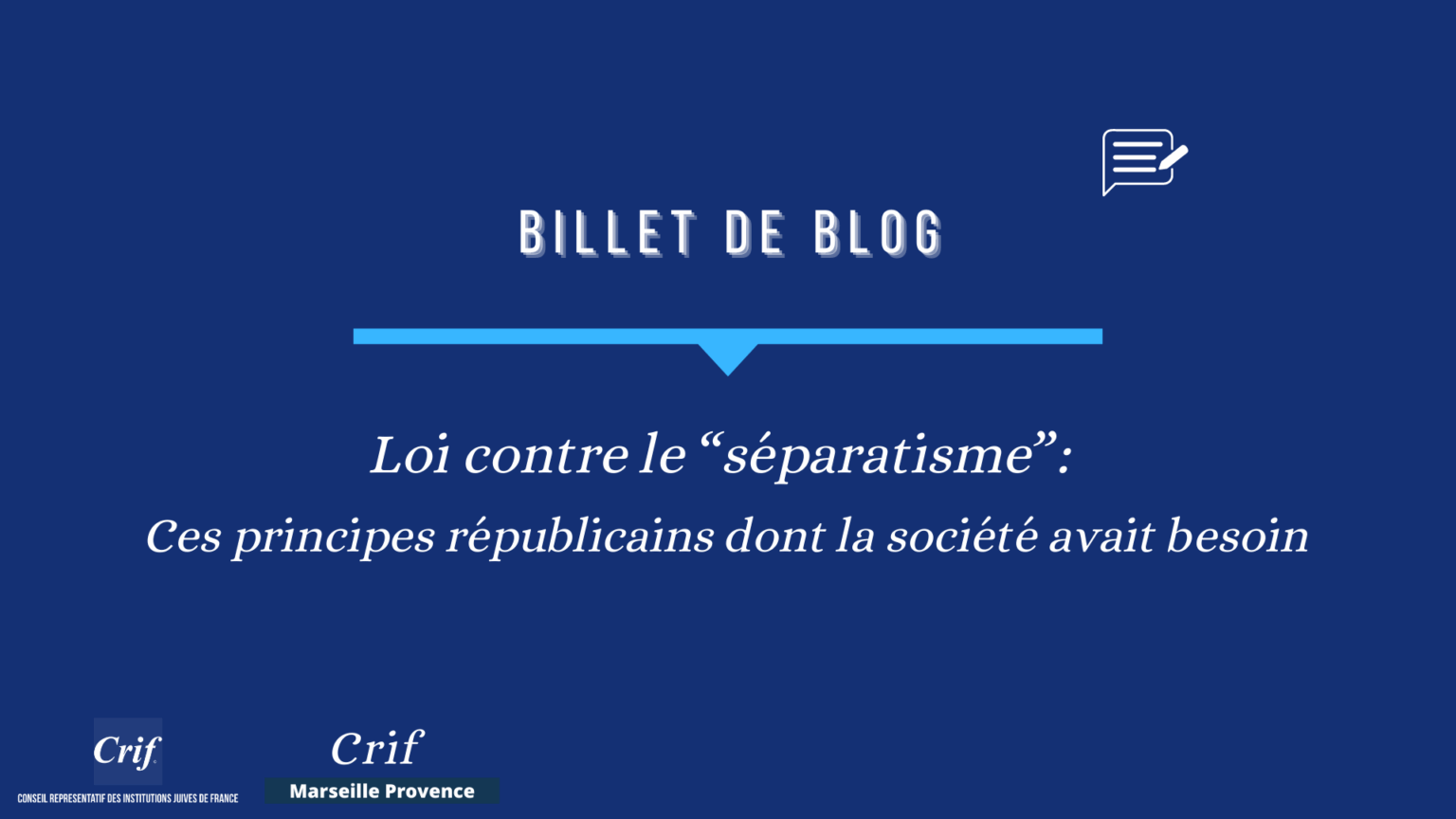 Interrogé le 3 février au Sénat, le grand rabbin Haïm Korsia a estimé que les principes contenus dans cette loi étaient ceux dont la société avait besoin. « Oui, cette loi est nécessaire, a-t-il déclaré, c’est une recherche de cohérence. » Pour lui, « il faut que celui qui gère une association sous le régime de la loi de 1901 ait les mêmes contraintes que celui qui en gère sous celui de la loi de 1905. » Et d’ajouter que « la loi doit être uniforme et capable de ne pas gêner ceux qui appliquent les principes républicains. » La devise du Consistoire est Religion et Patrie, ce qui ne laisse aucune ambigüité sur le respect du contrat républicain. Pour le grand rabbin, il n’est pas nécessaire de recevoir des subventions de l’Etat pour être obligé de proclamer son engagement républicain. Et d’interroger : « Qui peut s’inscrire dans l’espace républicain sans dire « J’adhère aux principes » ? Chaque association en France devrait s’engager à respecter de manière intégrale les principes républicains. »