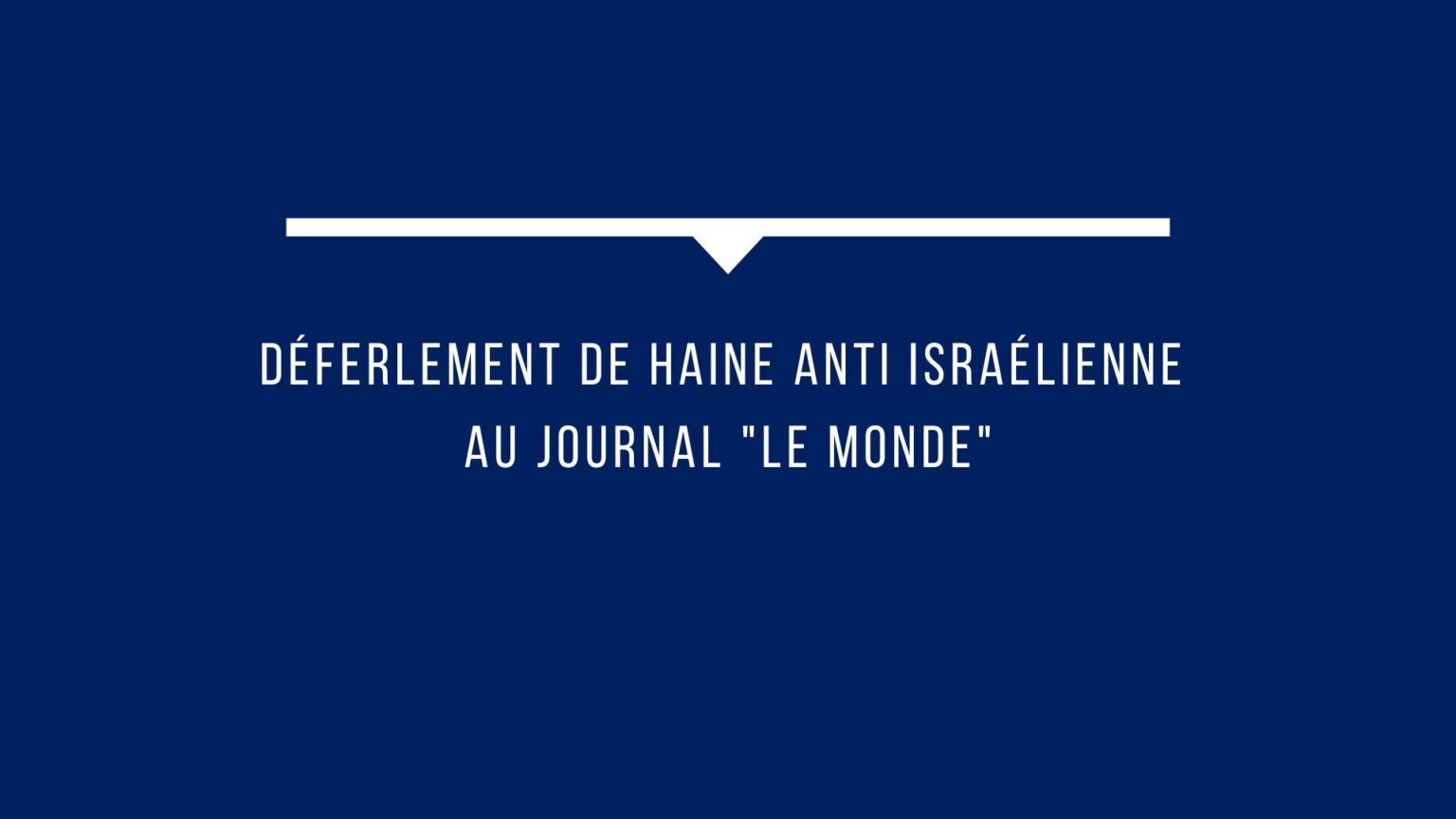 Est-ce cela qu’on devrait lire dans un « quotidien de référence » ? L’écriture venimeuse est une affaire de style et les guillemets encadrant le qualificatif « réunifiée » à propos de la capitale d’Israël, précise les préférences de l’auteur. « Déferlement de haine anti arabe » signifierait un torrent irrépressible, une sorte de pogrom anti-arabes mené par des Juifs.