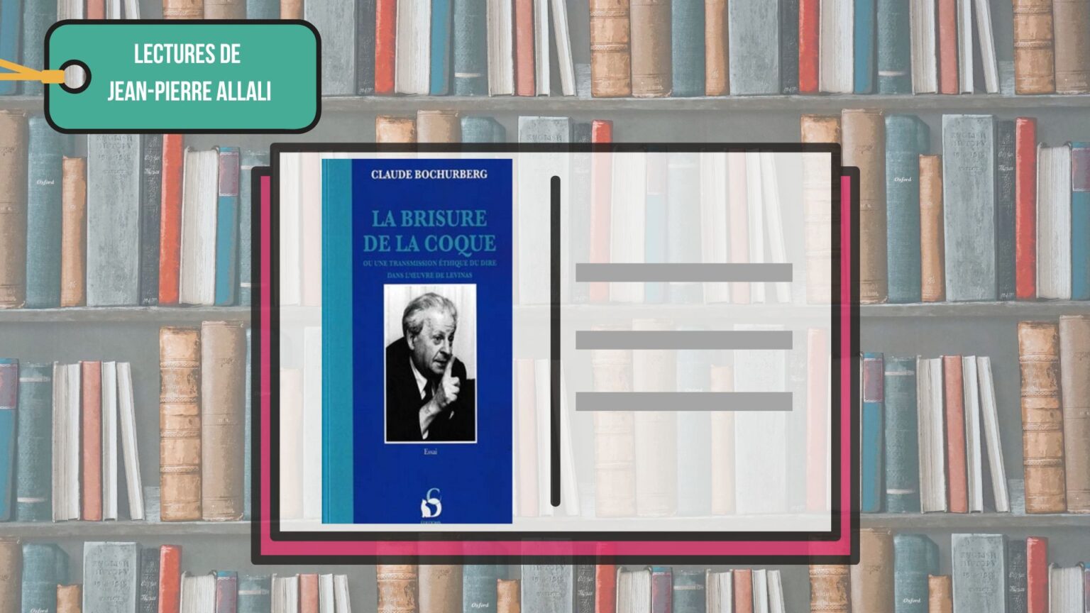 Admirateur fervent de Levinas, Claude Bochurberg, dans ce petit livre, nous présente un auteur certes difficile d’accès, « rugueux » même, mais essentiel pour comprendre le sens profond du judaïsme : « un état intérieur, une disposition de l’âme, une dimension de l’esprit ». Dans sa préface, Marc-Alain Ouaknin parle « d’un remarquable ouvrage que l’on reçoit comme une poignée de mains », « d’un livre traversé par un souffle inspiré ». La brisure de la coque, c’est en fait la brisure de la coque de l’ego, qui fait dire à Levinas que, tout compte fait, c’est l’Autre, notre prochain, qui compte avant tout.