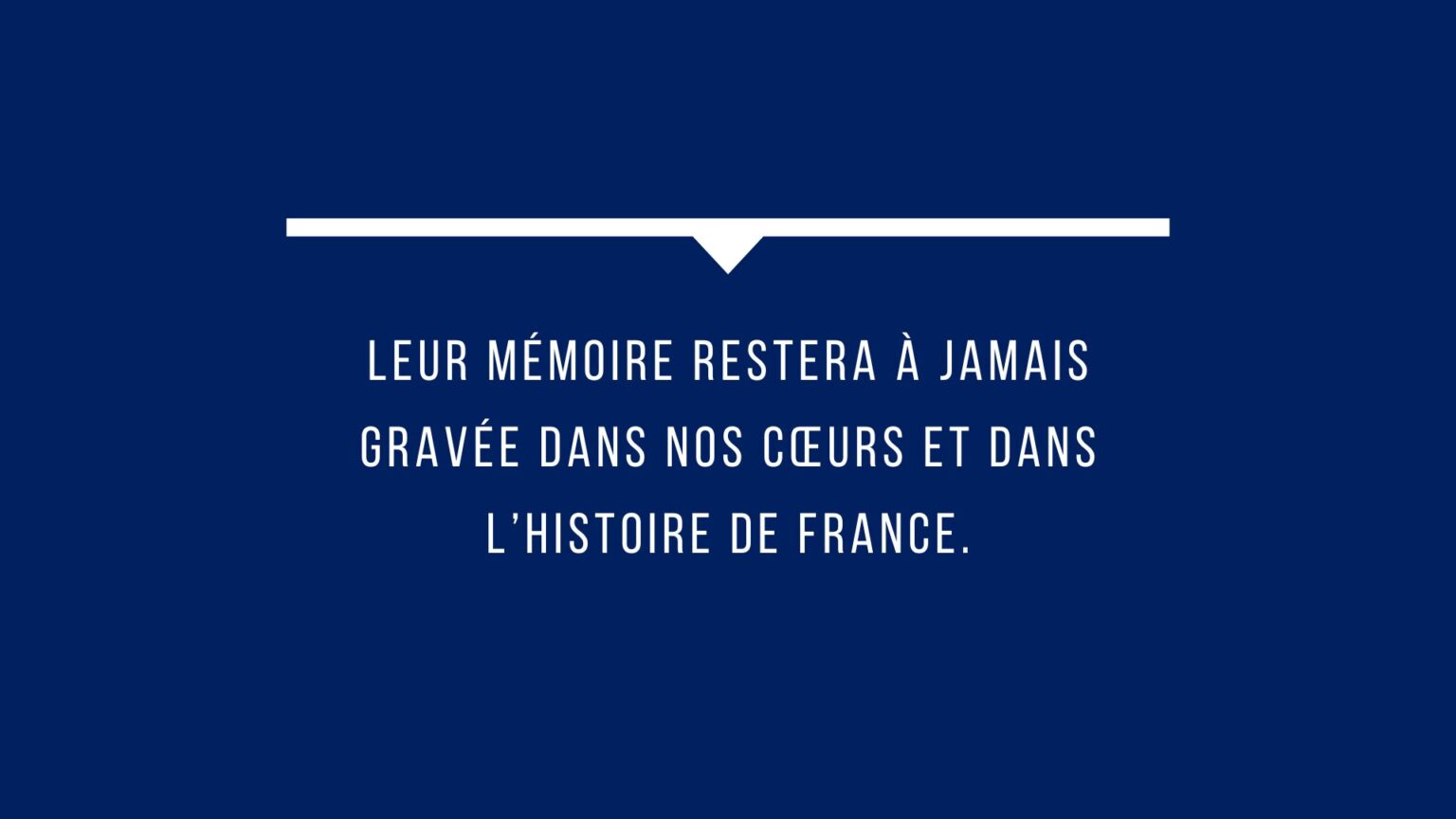 Leur Mémoire restera à jamais gravée dans nos cœurs et dans l’Histoire de France.