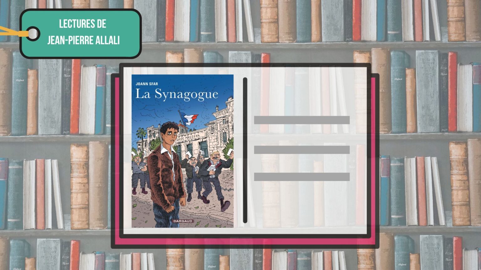 Le titre de cette énorme bande dessinée est trompeur car, tout compte fait, on y parle relativement peu de synagogue. À 49 ans, cloué au lit par la Covid-19, Joann Sfar se penche sur son passé. Il évoque son enfance, à Nice, sa mère trop tôt disparue, sa famille, ses amis. Pour ce qui est de la synagogue, il avoue qu’il n’aime pas trop assister aux offices avec son père et qu’au lieu de lire son livre de prières, il préfère jouer avec son Schtroumpf. L’occasion d’aller à la synagogue sans y pénétrer se présente un jour quand on lui propose de faire partie du service d’ordre. Chouette : aller à la synagogue mais en restant dehors. Et tant pis s’il vente ou s’il pleut. « Tout plutôt que faire la prière avec les autres Juifs ! Dieu existe… » Oui, Dieu existe ! La preuve, c’est qu’il a de l’humour : « Et que dès qu’il me regarde, il est content de sa blague : il a pris le Juif qui a toujours tout fait pour fuir la synagogue… et lui a offert la fortune grâce à un ouvrage intitulé Le chat du rabbin ». En tout état de cause, « je ne veux pas aller à la synagogue ! Ils crient trop fort, les Juifs ». Mais, lui rétorque son père, « Ce ne sont pas des cris, C’est des chansons » ;