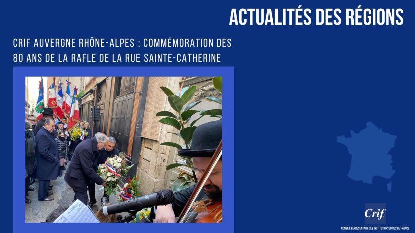 À l’occasion de la commémoration des 80 ans de la rafle de la rue Sainte-Catherine, le Président du Crif Auvergne Rhône-Alpes (ARA), Richard Zelmati, a prononcé un discours fort et engagé.