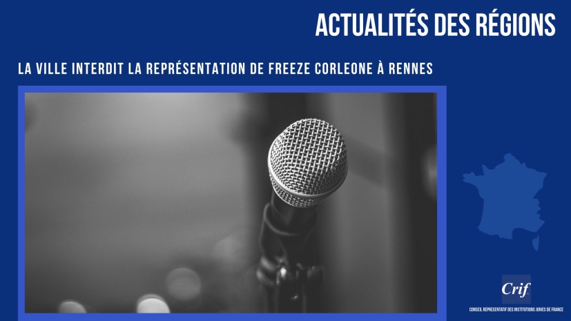 Programmée en mars pour un Festival, la venue de Freeze Corleone faisait polémique. Soutenu par le Crif national, le délégué du Crif Bretagne, Jean-Philippe Elkaim, alerte depuis des semaines les élus locaux sur les dangers d’une telle programmation. Hier, la ville de Rennes a pris un arrêté d’interdiction.