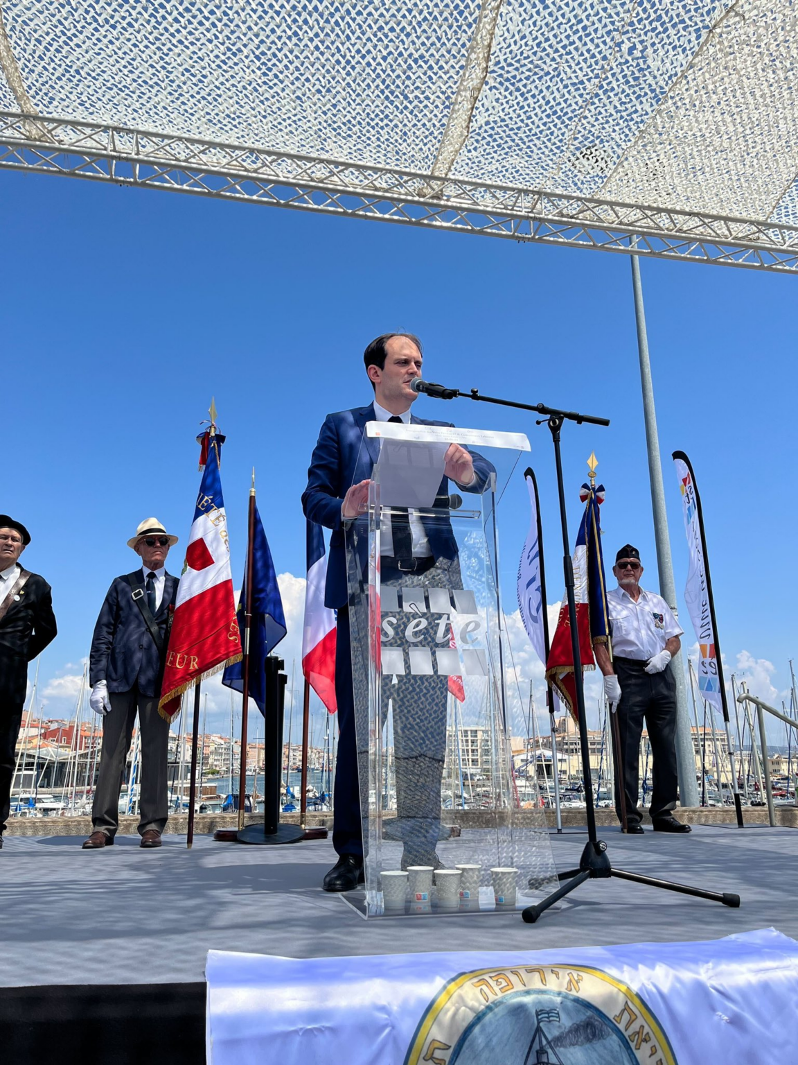 L’amitié qui lie la France à Israël est forte de cette histoire et pérenne grâce à nos engagements partagés. Aussi, nous ne craignons pas les tentatives qui voudraient la briser. Les tentatives d’assimiler Israël à un régime colonial ou d’apartheid n’ont aucun sens pour qui connaît l’Histoire. Et en particulier, ici, à Sète, on sait que celles et ceux qui peuplent Israël n’ont pas de métropole de repli. Les Juifs qui vivent en Israël n’ont nulle part où rentrer.
